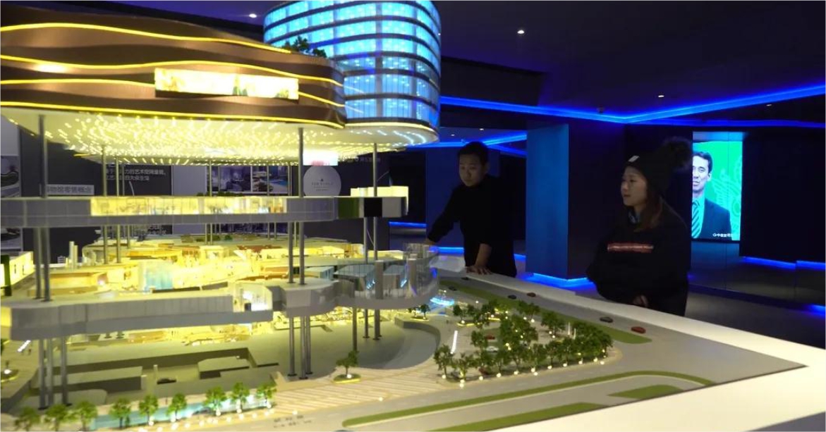 沙盘展示区,以可升降沙盘结合质感光效,演绎理想与现实的结合。